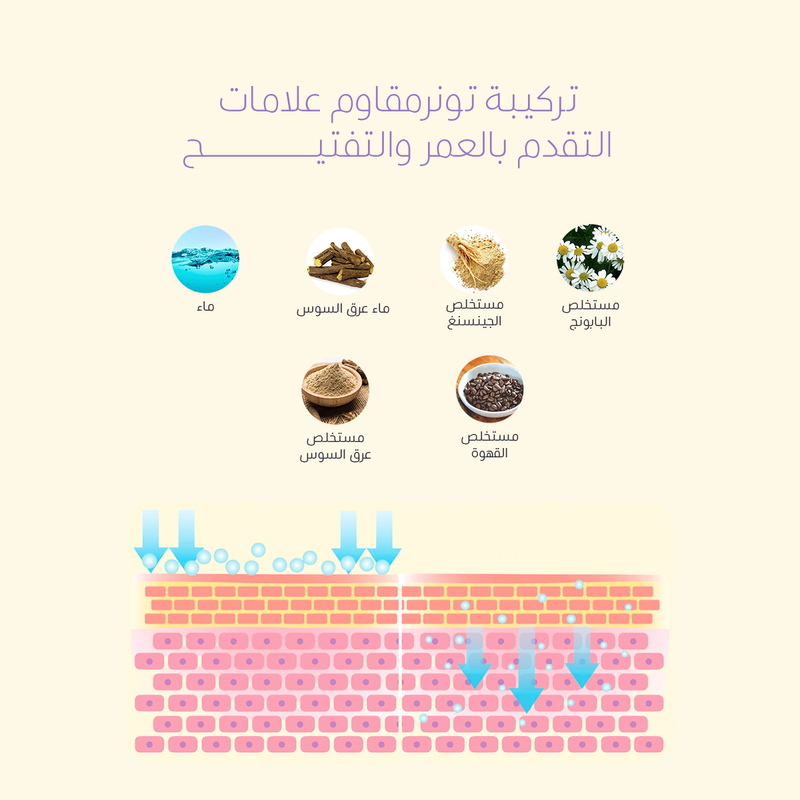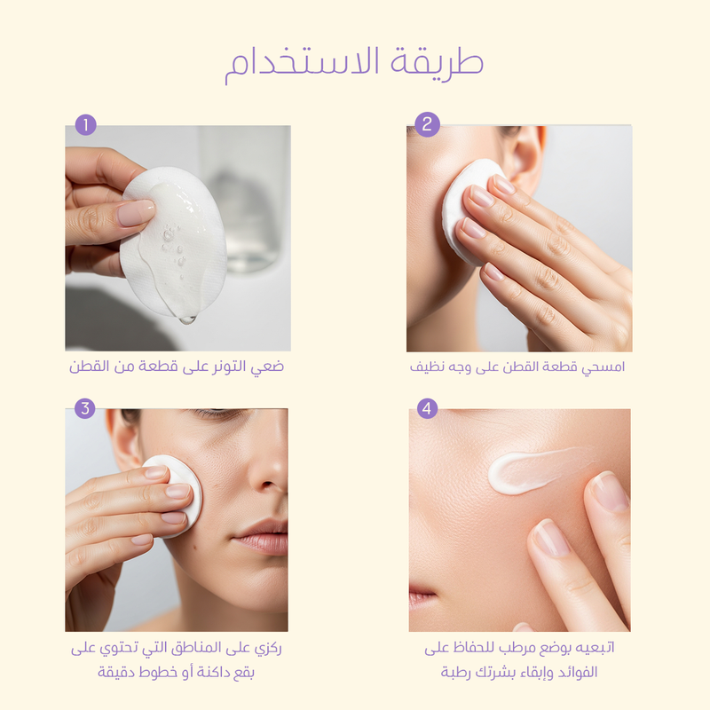 منتجنا ليس مجرد تونر عادي، بل هو تركيبة متكاملة تأخذ بشرتكِ في رحلة استثنائية من 3 مراحل، لتعيد لها شبابها وحيويتها.
