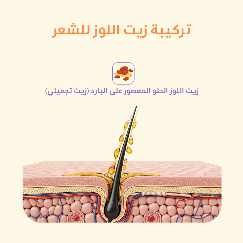 1. مرحلة التغذية والتغلغل تبدأ الرحلة بتوفير ترطيب عميق وإعداد الشعر. وهنا يأتي دور زيت اللوز الحلو المعصور على البارد، حيث يتغلغل بسهولة في الشعر ليمنحه ترطيباً طويل الأمد، كما تعمل خصائصه على تغذية وتقوية بصيلات الشعر.