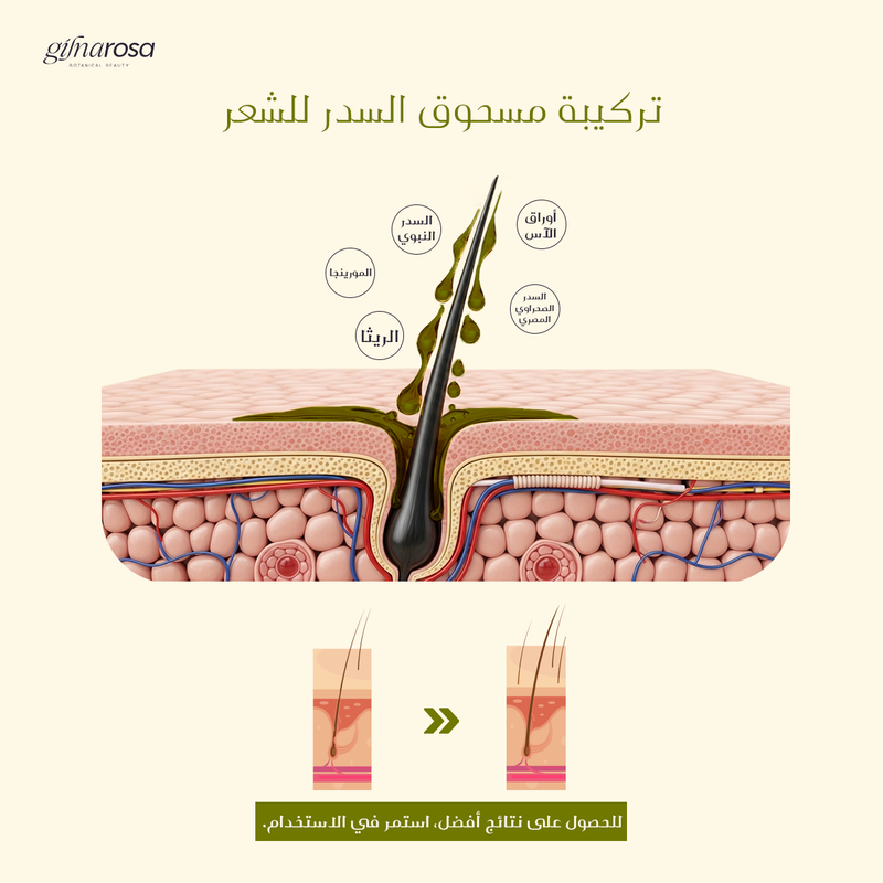 تركيبتنا النقية تعمل على تنظيف فروة الرأس بعمق، وتغليف كل شعرة لزيادة سمكها وقوتها، مما يمهد الطريق لنمو شعر صحي وكثيف.