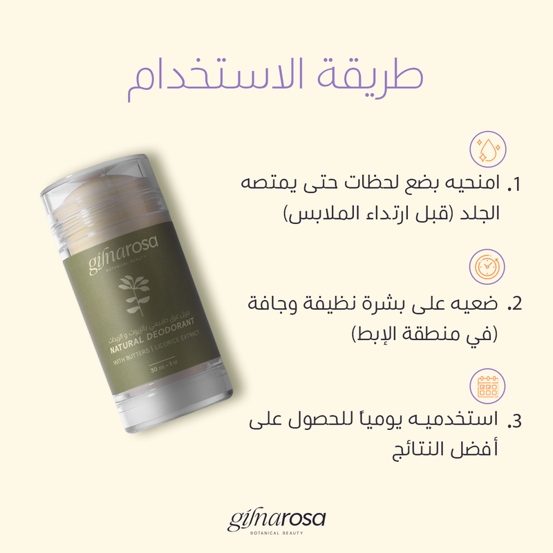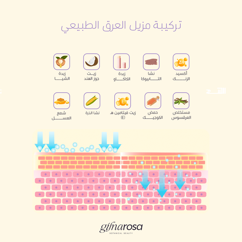 - مكونات محاربة للروائح: تعمل مكونات مثل زيت جوز الهند وأكسيد الزنك بخصائصهما المضادة للبكتيريا على تحييد البكتيريا المسببة للروائح، مما يمنحكِ شعوراً بالانتعاش يدوم طوال اليوم.