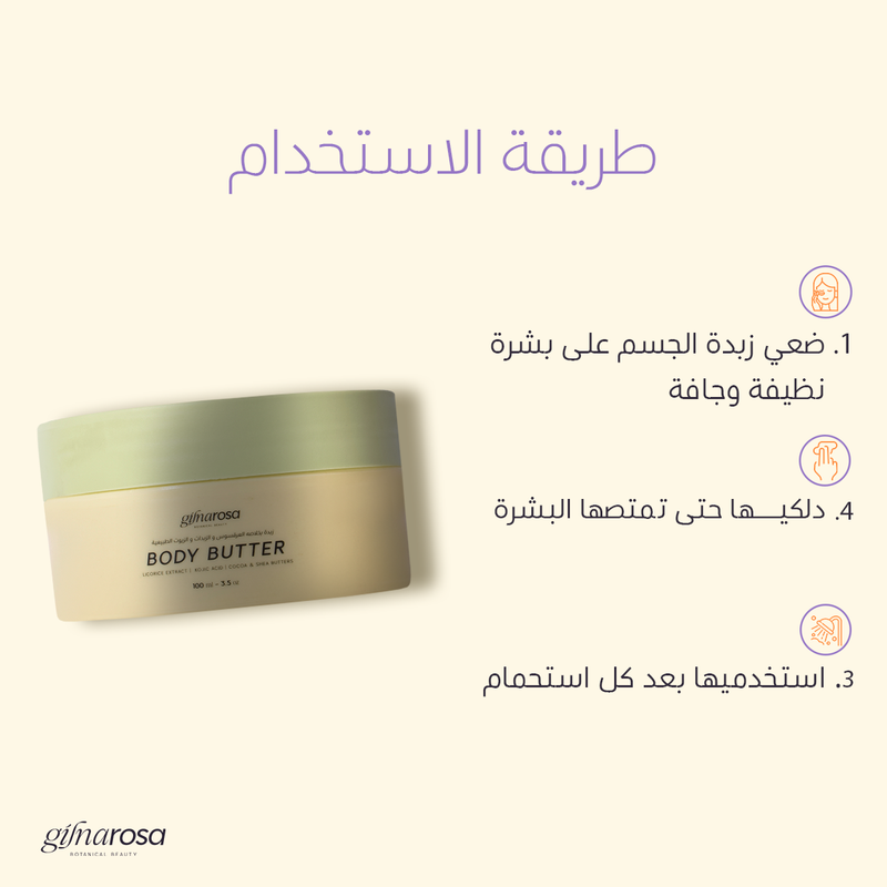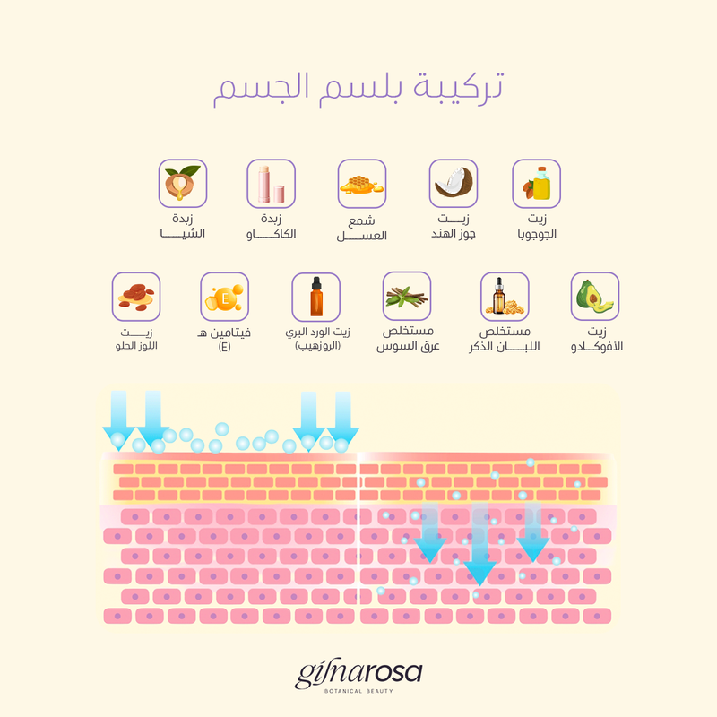 - الانتظام: يُفضل استخدامها بعد كل استحمام. (النتيجة: ترطيب عميق، تنعيم وتغذية البشرة).