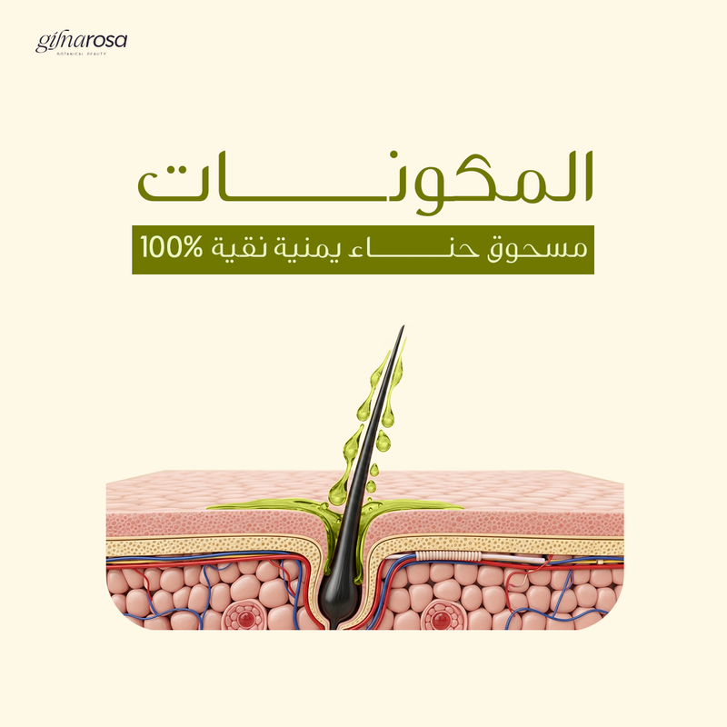 تركيبة الحناء اليمنية النقية الأصلية من دولتها الأم تعمل بشكل طبيعي لتغلف كل خصلة من الشعر، مما يعزز من سمكها وقوتها، ويمنحكِ كل الفوائد في منتج واحد