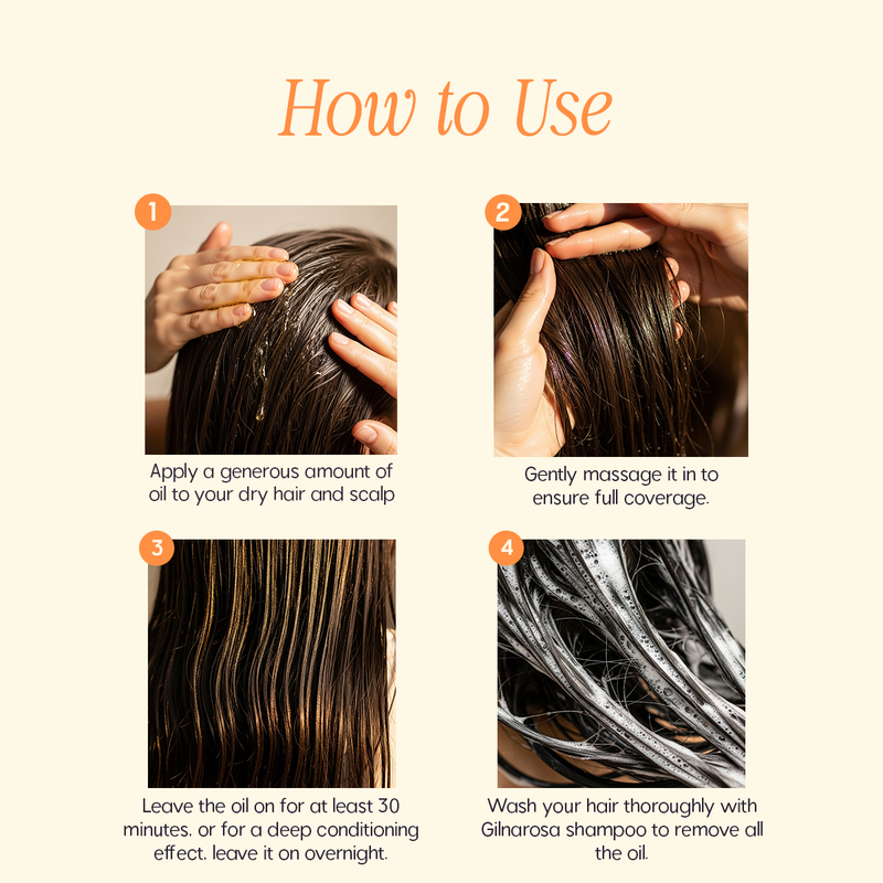 Our product isn't just an oil; it's a complete formula that takes your hair on an extraordinary 3-phase journey to deeply nourish it and renew its youth.