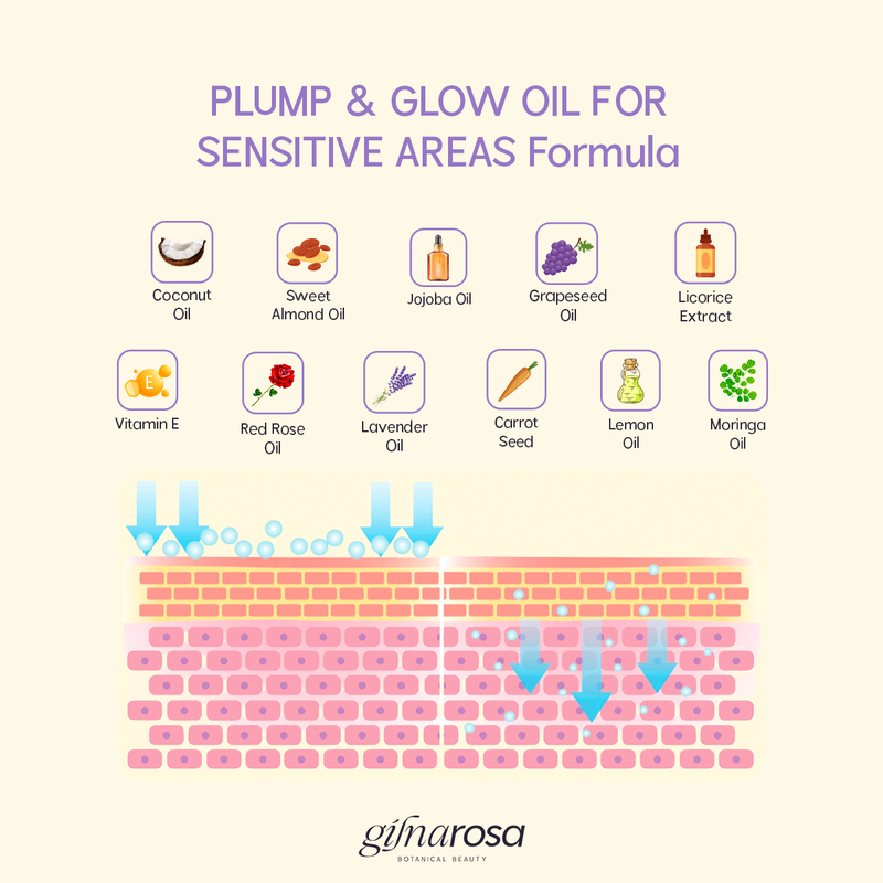 Say goodbye to temporary solutions that don't treat the problem from its roots. Our Natural Brightening and Plumping Oil for Sensitive Areas is the ultimate solution for renewing your skin. It’s not just an oil; it’s a complete system that combines deep nourishment, effective brightening, and intense hydration in one step.