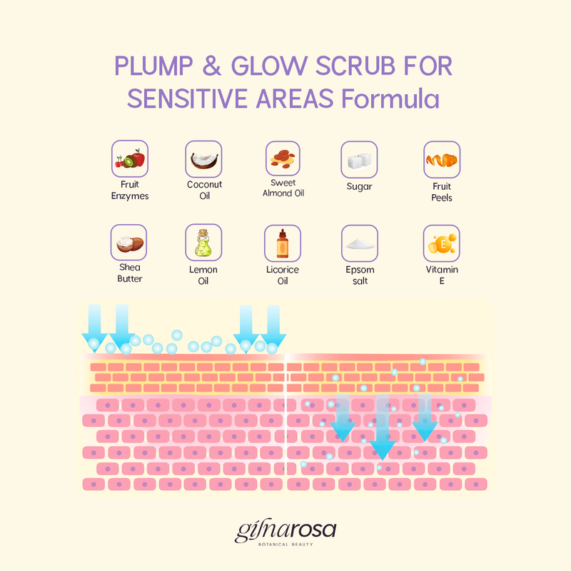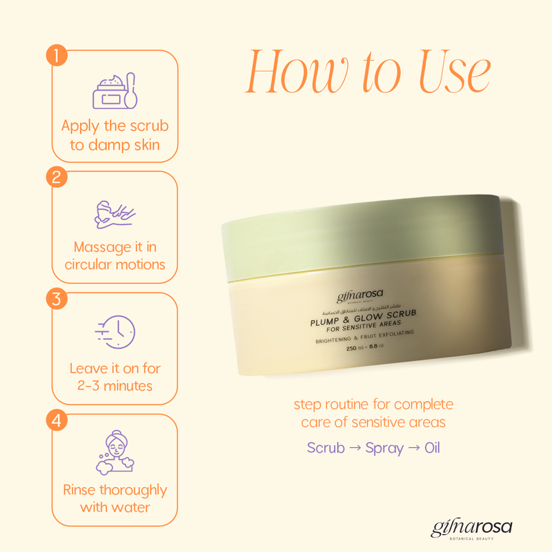 Say goodbye to temporary solutions that don't treat the problem from its roots. Our Brightening and Plumping Scrub for Sensitive Areas is the ultimate solution for renewing your body's skin. It’s not just a scrub; it’s a complete system that combines gentle cleansing, effective exfoliation, and intense hydration in one step.