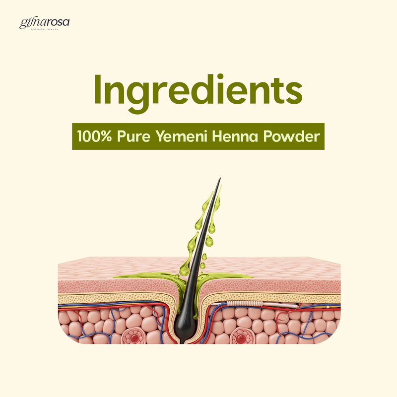 The pure, authentic Yemeni Henna, sourced from its native land, works naturally to coat every hair strand, which enhances its thickness and strength, giving you all the benefits in one product: